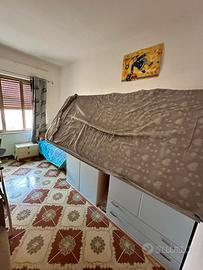 Vendo mobile cameretta per bambino con due letti. Uno dei letti è posizionato sopra il mobile a castello e ha un sistema basculante, con blocco di sicurezza, che consente di rifare il letto o cambiare le lenzuola in semplicità. La camera è completa di specchio, sponda di sicurezza e scaletta per raggiungere il letto a castello.