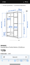 Vendo causa inutilizzo mobile camera da Letto bianco 3 ante misure come da foto prezzo trattabile