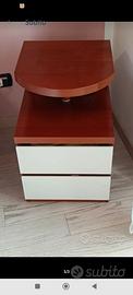 Mobile da camera da letto in legno ciliegio, lunghezza cm 2,50 e prof . cm 55. Il tavolino e l'angoliera in fondo sono staccabili. Si abbinano al mobile anche due comodini. Il materiale è di ottima qualità.