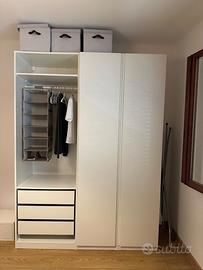Mobile bianco con 2 ante, cassettoni e bastone Larghezza 175