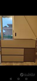 Comò compreso di specchio di 3 scaffali. Completamente nuovo appena comprato ma devo venderlo poiché non mi sta nella camera.