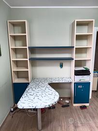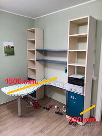 Mobile libreria con scrivania come da fotografie allegate. le 2 mensole blu non sono più disponibili perché già utilizzate. Condizioni più che buone, prezzo affare per chi viene a caricarselo. Il mobile è già smontato.