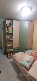 vendo, per cambio casa, mobile cameretta ad angolo, come nuova, comprata 1 anno e mezzo fa' presso Mondo Camerette (€ 2.700). La stessa è composta da mobile ad angolo (cabina armadio) con adiacente mobile con cassettiere e ripiani chiuso con anta ed angolo porta oggetti a vista con più ripiani (come da foto) più 2 letti standard. Ottimo affare. Preciso che la stessa è già smontata e il trasporto è a carico dell'acquirente.
