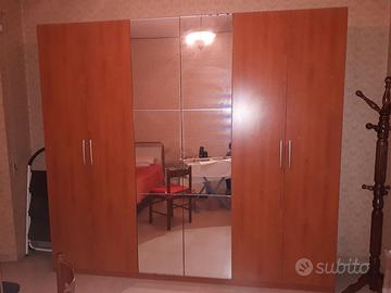 Mobile cameretta o salone da 6 ante di cui 2 a specchio di dimensioni in cm. 260x240(h)x58