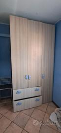vendo cameretta composta da letto a ponte, ( letto sotto da una piazza e mezzo e sopra da una piazza) , scrivania e armadio con 4 ante e 2 cassetti.
