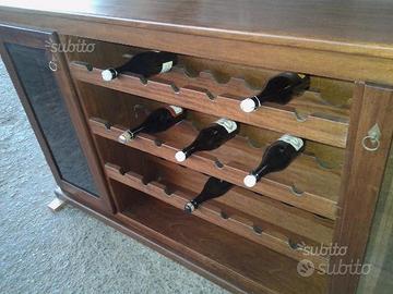 Stupendo mobile cantinetta in massello tinto noce della misura di 100x185x30,5. Spessore struttura 25 mm...piano superiore 30 mm e zoccolatura alta 50 mm con ante telaio e vetri bisellati...ferramenta anticata con 4 ripiani ( due x anta ). Vendo a prezzo di vero realizzo 600,00? leggermente trattabile.