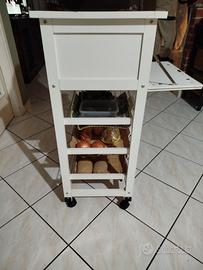 Mobile carrello in legno con rotelle e piastrelle Altezza 76 cm + 8.5 rotelle larghezza 43.5 profondità 33.5 piano sopra con piastrelle 47 x 37.5