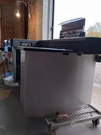 Vendo mobile cassa da supermercato Mod. Cefla con nastro trasportatore, fotocellula e pedale di avanzamento, barriera cliente, vasca acciaio con doppio scompartimento, cassetto portamonete, scanner, modello con entrata a dx. Larghezza 110cm, lunghezza 210cm, usata 15 anni ma tenuta bene perché in acciaio