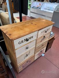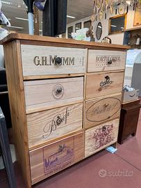 Mobile cassettiera artigianale con legno di recupero, larghezza 89cm, profondita 39cm, altezza 95cm.