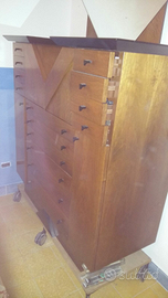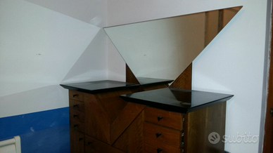Mobile cassettiera con specchiera di design in legno massello (massiccio) perfettamente conservato e come nuovo, oggetto di qualità e design ormai introvabile.