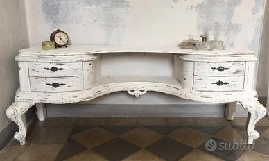 Vendo mobile/cassettiera di colore bianco restaurato in stile Shabby Chic, utilizzabile anche come mobile TV. Misure: -Lunghezza: 130 cm -Larghezza: 43 cm -Altezza: 51 cm Disponibile per il ritiro.