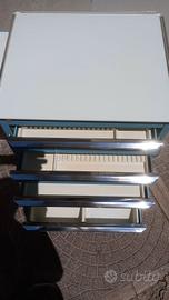 Il mobile è realizzato in metallo di color celeste ✅(per riverbero di luce, il mobile appare azzurro ma è più chiaro) ✅ con finiture acciaio, ottimo stato, qualche lieve segno di utilizzo.