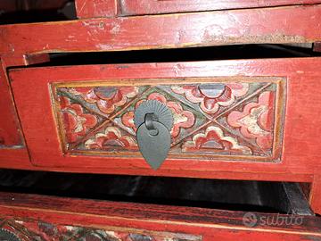 Mobiletto cinese antico con 3 cassetti, misure: larghezza cm. 45, profondità cm.32, altezza cm.40 utilizzabile come porta riviste, comodino, ecc.