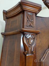 Realizzato in legno con ricchi intagli decorativi. La struttura è solida e ben conservata, con serrature originali e chiave funzionante.