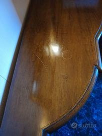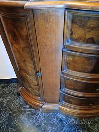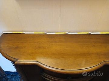 Vendo mobile classico con due librerie laterali,e con rifiniture sugli sportelli in radica, e 4 cassetti centrali, è in legno massiccio presumo palissandro ( no impiallacciato). Ha solo una riga superficiale e un piccolo segno rotondo, poco visibile . ( si vedono nella foto ) Misura 1.20 di lunghezza, 38 cm 1/2 di profondità e 82 cm di altezza.