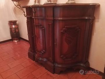 Vendo mobile per ingresso in stile classico con un cassetto centrale e 3 antine con chiave decorate ad intarsi.