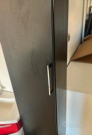 Mobile alto a colonna adatto anche come scarpiera, colore legno scuro, piedi in acciaio, molto solido con 7 ripiani capienti Misure 203 x 40 x 30