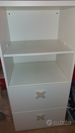 Questa libreria ti offre tanto spazio pur occupandone poco. I ripiani a giorno sono pratici per i libri, mentre i cassetti possono contenere grandi e piccoli oggetti. Tutto a un'altezza accessibile al tuo bambino.
