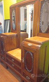 Mobile comò antico con specchio e marmi rosa integri originale, primi novecento. Legno con lavorazione incastri a coda di rondine. Zona di ritiro ostia lido.