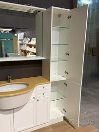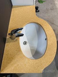 Vendiamo mobile da bagno completo come da foto. Lunghezza totale: 130cm Profondità totale: 58,5cm Profondità parziale: 37cm Specchio con illuminazione. Miscelatore e Sifone Inclusi.