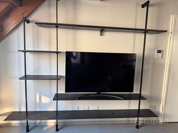 airport cattelan italia utilizzabile come libreria o mobile tv minimal come nel caso della nostra ambientazione. struttura nera e finitura bronze. perfetta perché posta in casa poco vissuta. 2 minimi segni non visibili riportati nella foto. misura 260 cm (lunghezza massima) x 230 cm (altezza massima). costo acquisto certificato 3.050,00