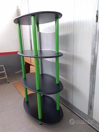 Vendo mobile COMPONIBILE per ufficio soggiorno salotto, in legno nero con profilo in gomma, schienale in metallo di colore grigio, piedini regolabili con gomma sotto, 4 ripiani mensola misure 123 x 72,5 cm, con possibilità di togliere mensole e lasciarlo ad una altezza inferiore (altezza completa 190 cm, con 3 ripiani 131 cm, con 2 ripiano 72, altezza da terra 11 centimetri), ottimo per appoggio, esposizione, arredo, ambiente hole, reception, ufficio. Nuovo, mai usato, montato solo per fare le foto, su scatola originale con imballo anti striscio. Chiedo 40 euro al pezzo, disponibili 3 pezzi