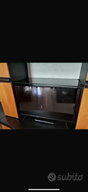 Mobile in legno massello, colore nero e miele. Composto da vetrinetta, 4 cassetti, 4 antine, 1 mensola in cristallo più spazio per televisore. Sul lato sinistro mensola porta lampada tonda. Da ritirare in loco