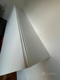 Mobile con ante Ikea Besta bianco , ripiani interni regolabili , piano di copertura in vetro temprato bianco .