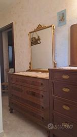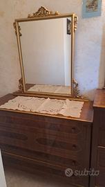 Mobile con specchiera e cassettiera. Color legno e specchio color oro.