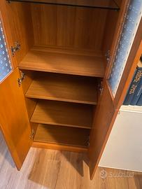 Vendo mobile a 4 ante con scaffali . Parte superiore con scaffali in vetro e parte inferiore con scaffali in legno . Misure Altezza 197 cm x Larghezza 50cm x Profondita 36cm . NB : Trasporto a carico dell’acquirente.