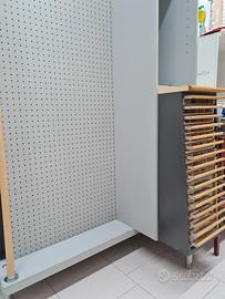 Mobile con pannello metallo forato x esporre qualsiasi art . Con vari cassetti . Altezza cm 2.14 Profondità lato cassetti cm 54 Profondità lato pannello cm 20 Lunghezza cm 96 NE HO DISPONIBILI 2 PEZZI