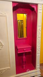 mobile con specchio e cassetto appendiabiti ricondizionato ottime condizioni da foto .Anta scorrevole pezzo artistico di design che si abbina al classico e al modern dimensioni H 200 cm larghezza massimo 150 cm. spessore 35 .Le misure all incirca sono quelle peso una cinquantina di kg. Ripeto il mobile e come da foto .