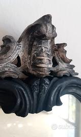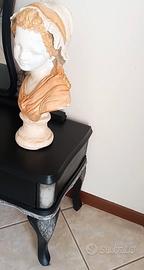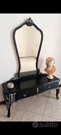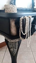 Petineuse vintage in legno, rivisitata per dare nuova vita di colore nero con due comodi cassetti e fregi colore avorio anticati. adatta sia per una camera da letto che per la zona living.