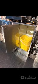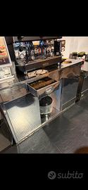 Vendesi mobile bar professionale in acciaio inox con tramoggia fondi caffè Misure: 150x69x110h cm Completo di cassetto e vano contenitore inferiore. Ideale come supporto per macchina caffè professionale in bar, pub o attività food. Contattare solo se seriamente interessati Ritiro in loco