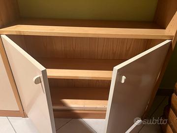 Vendo mobile con vetrina in frassino e sotto base con ante, lateralmente due basi colore bianco praticamente tutto pari al nuovo