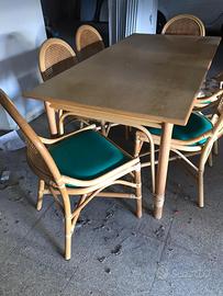 Vendesi mobile con vetrinetta e tavolo con sedie tutto in vimini.