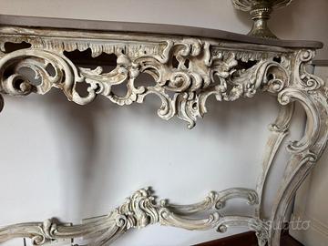 Mobile Consolle In Stile Provenzale, tutto in legno pregiato anche il piano. Provenienza Francia. Misure larghezza cm. 133, altezza cm. 93 profondità cm. 38 €. 200