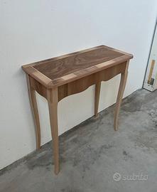 Elegante consolle da ingresso/soggiorno, con cassetto e piano intarsiato, realizzata artigianalmente in legno.