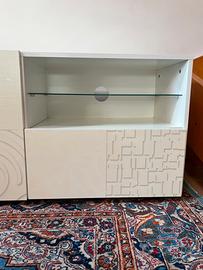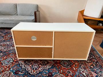 Mobile contenitore con anta e cassetto bianco lucido in ottime condizioni.