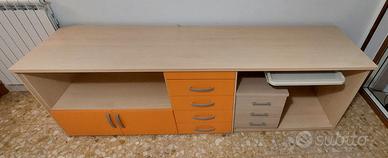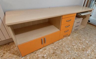 Mobile contenitore da cameretta compreso di cassettiera e un comodino. Dimensioni: Lunghezza = 241cm Profondità = 62cm Altezza = 78cm Ritiro o spedizione a carico di chi è interessato.