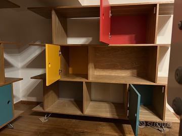 Mobile contenitore e libreria in legno con tre ante, dimensioni Lxpxh: 145x38x115cm. Vendo anche la coppia