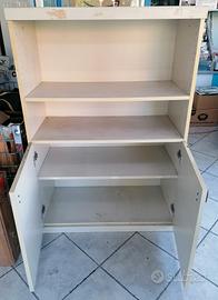 Regalo mobile contenitore in legno colore bianco/avorio. Composto da due ripiani aperti nella parte superiore e un vano chiuso con doppia anta nella parte inferiore, completo di ripiano interno. Ideale per cucina, dispensa, ufficio o garage. Condizioni buone, con normali segni di utilizzo visibili (come da foto). Ritiro a carico dell’interessato.