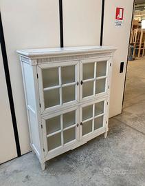 Struttura con quattro ante, con vetri satinati, e due ripiani interni posizionabili a varie altezze.