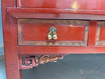 Elegante mobile orientale in legno, laccato rosso, tenuto in ottime condizioni, Certificazioni disponibili. Trasporto a carico acquirente. LA MADDALENA (SS)