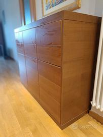 mobile credenza di legno colore noce con apertura e chiusura push and pull. profondità 48 cm, lunghezza 139 cm, altezza 109 cm.