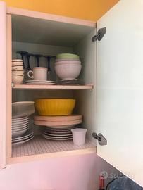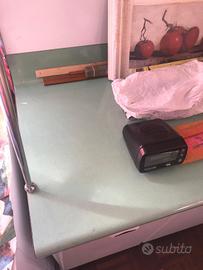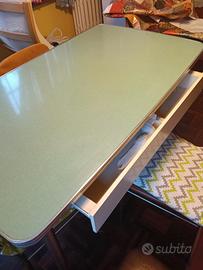 Salvarani anni 60 vendo originale mobile cucina cm 158x46 altezza cm 200 con tavolo 70x 120 con cassetto grande e 4 sedie. Il top della credenza è in Firon un laminato curvato, ideato brevettato e prodotto solo da Salvarani.Valuto offerte