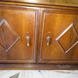 Mobile credenza in legno con qualche segno del tempo, ideale per gli ambienti di un arredamento classico ma, perché no, anche moderno, ad euro 30,00. Dimensioni: larg. 105 cm, h. 83 cm, prof. 27 cm.