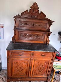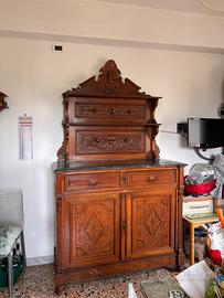 Mobile credenza da salotto/cucina della fine 800 con intarsi. Restaurato e lucidato di recente. Sopra ha un piano in marmo nero venato (55x130)di 2 cm di spessore