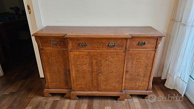 Credenza in radica di noce, con cassetti ed ante con serratura funzionante. Conservato bene L 138 x P42 x H 85cm