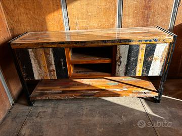 Bellissimo mobile credenza in stile industrial con legno di recupero e laterali in metallo Ideale come credenza o mobile TV Misure 150-43-77H